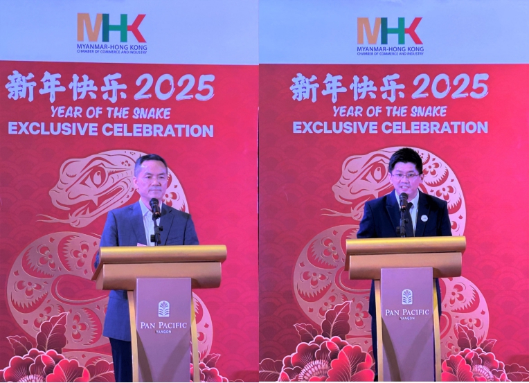 张凯杰会长欢迎各位嘉宾莅临并共同庆祝蛇年到来,新的一年,香港总商会将同缅社会各界一道,用坚定的信心面对挑战,携手创造更美好的未来。