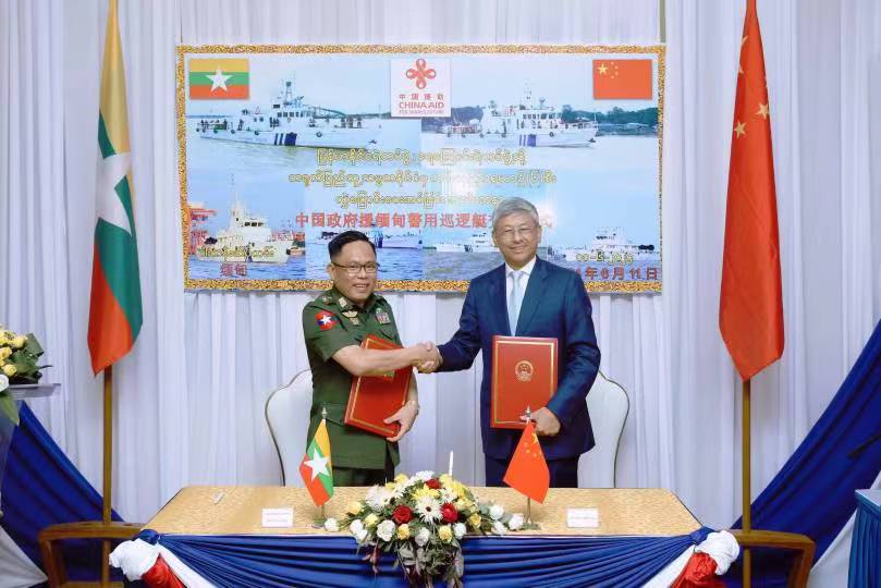 6月11日,中国政府援助缅甸6艘警用巡逻艇项目交接仪式在仰光举行。中国驻缅甸大使陈海、缅甸内政部副部长兼警察总监尼林昂中将、使馆欧阳道冰参赞、侯勇参赞等出席并登艇参观。陈海大使和尼林昂副部长签署交换交接证书。