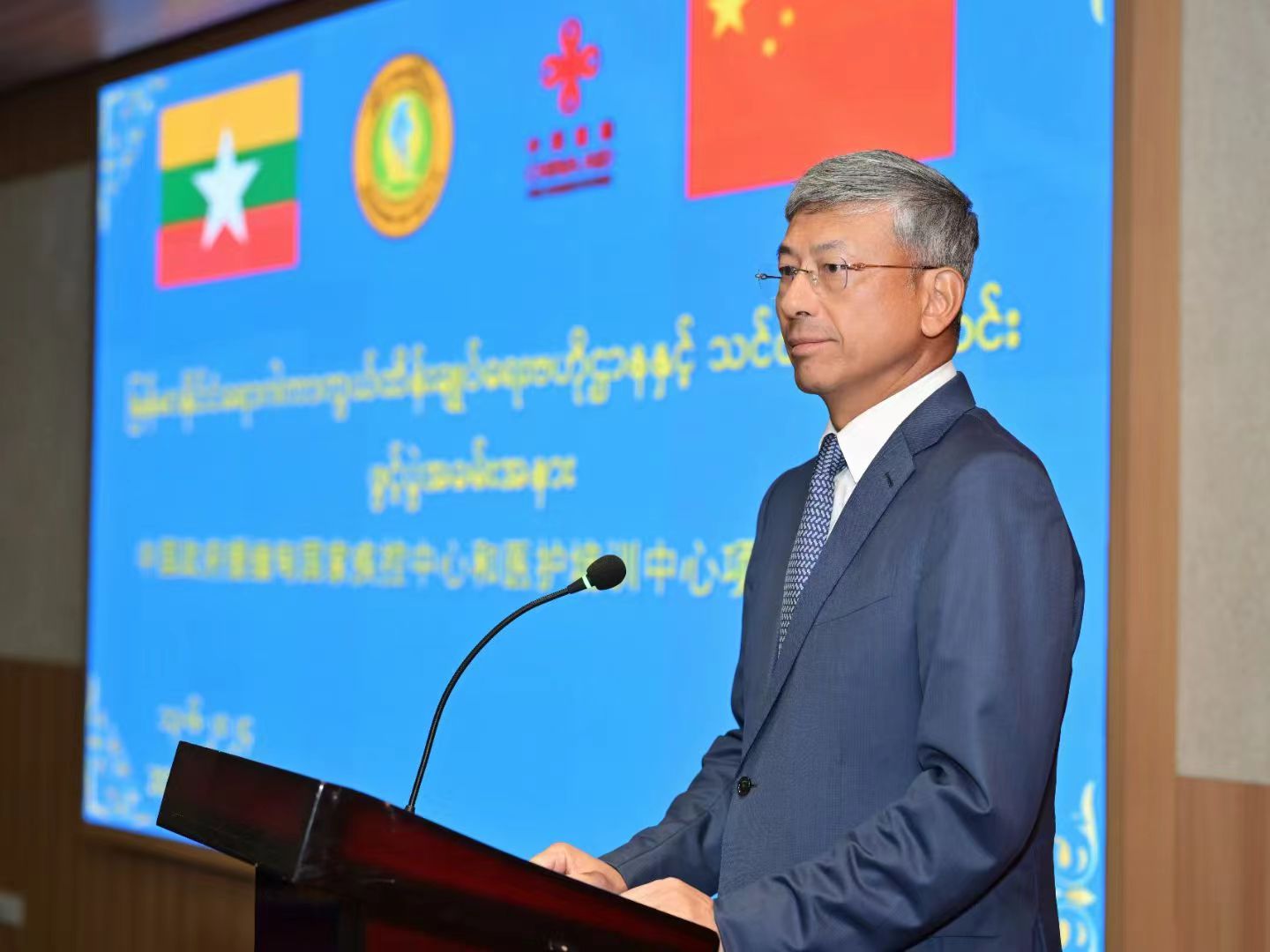 陈大使表示,习近平主席亲自倡导推动构建人类卫生健康共同体。这一理念贯穿中缅携手抗击新冠疫情的历程,在援建疾控中心的过程中也得到充分体现。中缅两国山水相连,胞波情深。在长久的历史岁月里,两国始终相互理解尊重,相互支持帮助,彰显了同甘共苦、守望相助的中缅命运共同体精神。中国政府坚持以人民为中心的发展理念,将继续坚持面向全体缅甸人民的对缅友好政策,同缅方加强政治互信,深化务实合作,高质量共建“一带一路”和中缅经济走廊,加强人文交流,助力缅甸实现和平、稳定与发展,让中缅友好合作更多更好地惠及两国人民。